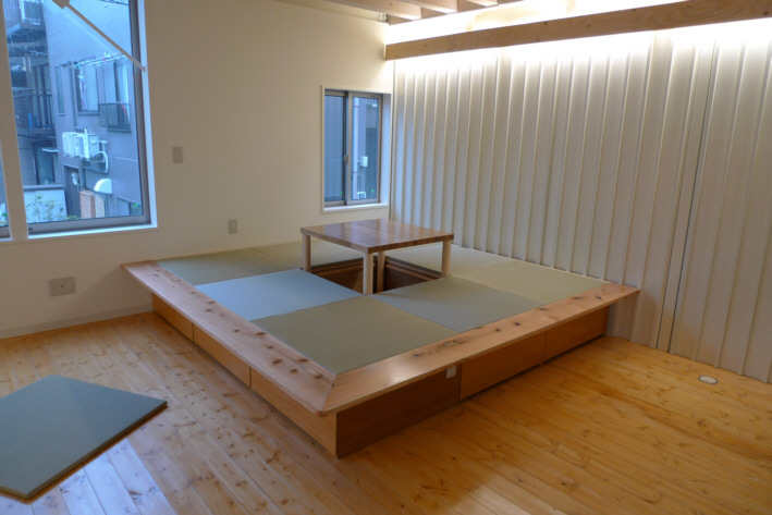 | ↑2階リビング小上がり 真ん中の畳部は掘りごたつにも! |