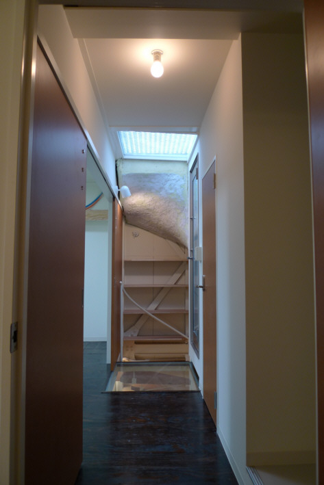 | ↑3階 螺旋階段とトップライト 空からの光が2階に届きます |