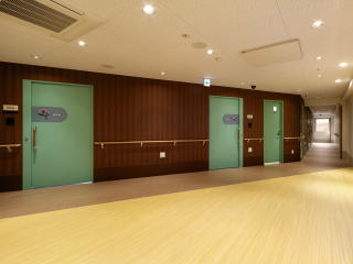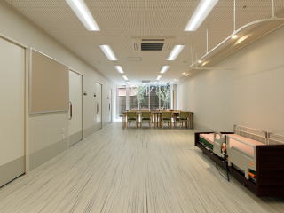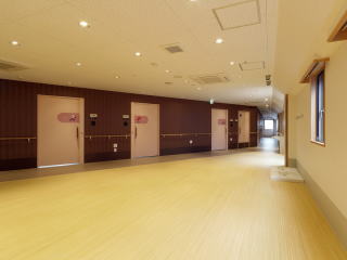 | ↑1階エントランス 正面に進むと核施設に直接つながる縦動線 | ↑1階 看護小規模多機能ホーム |