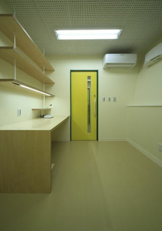 ↑診察室 作り付けの診察机と棚。棚下に照明を内蔵 |