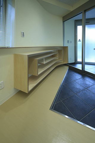 | ↑待合室 棚板の角を丸くし、子供が安全に使いやすく。 |