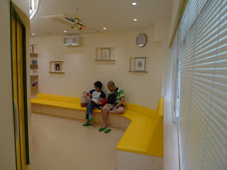 ↑待合室 決して広くないが、広がりを感じる待合室。子供の症状に合わせた3つの待合室を用意。 |