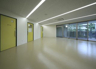 ■こどもを優しく包み込む丸壁 計画地は墨田区の北部、曳舟駅の近く。近年、超高層マンションが林立し、環境が大きく変わってきた地域です。 駅前密集市街地には、等高層マンションからプライバシー確保、西日の影響、隣地への日照確保等の問題があり、それらの問題を丸い壁を作ることで解決しました。 丸い壁は、中が空洞になっており、煙突効果により自然の換気を促すようになっています。密集市街地でありながら、光が入り、風が抜ける、この地域本来の心地よさを実感できる建物になっています。 |